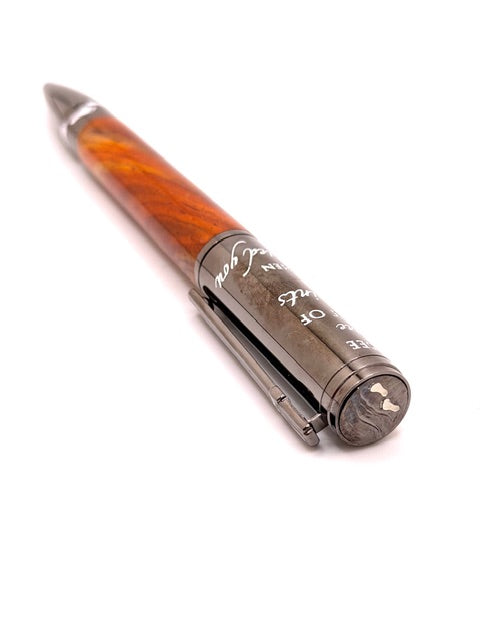 You can do this by clicking HERE or by going to the search box and type in "Custom Engraving". Complete the info needed and add to your shopping cart. Once the pen and "Custom Engraving" are in your cart, you must put the text you want engraved on the pen in the box "Add a note to your order" in your shopping cart. Please verify spelling before submitting your order.